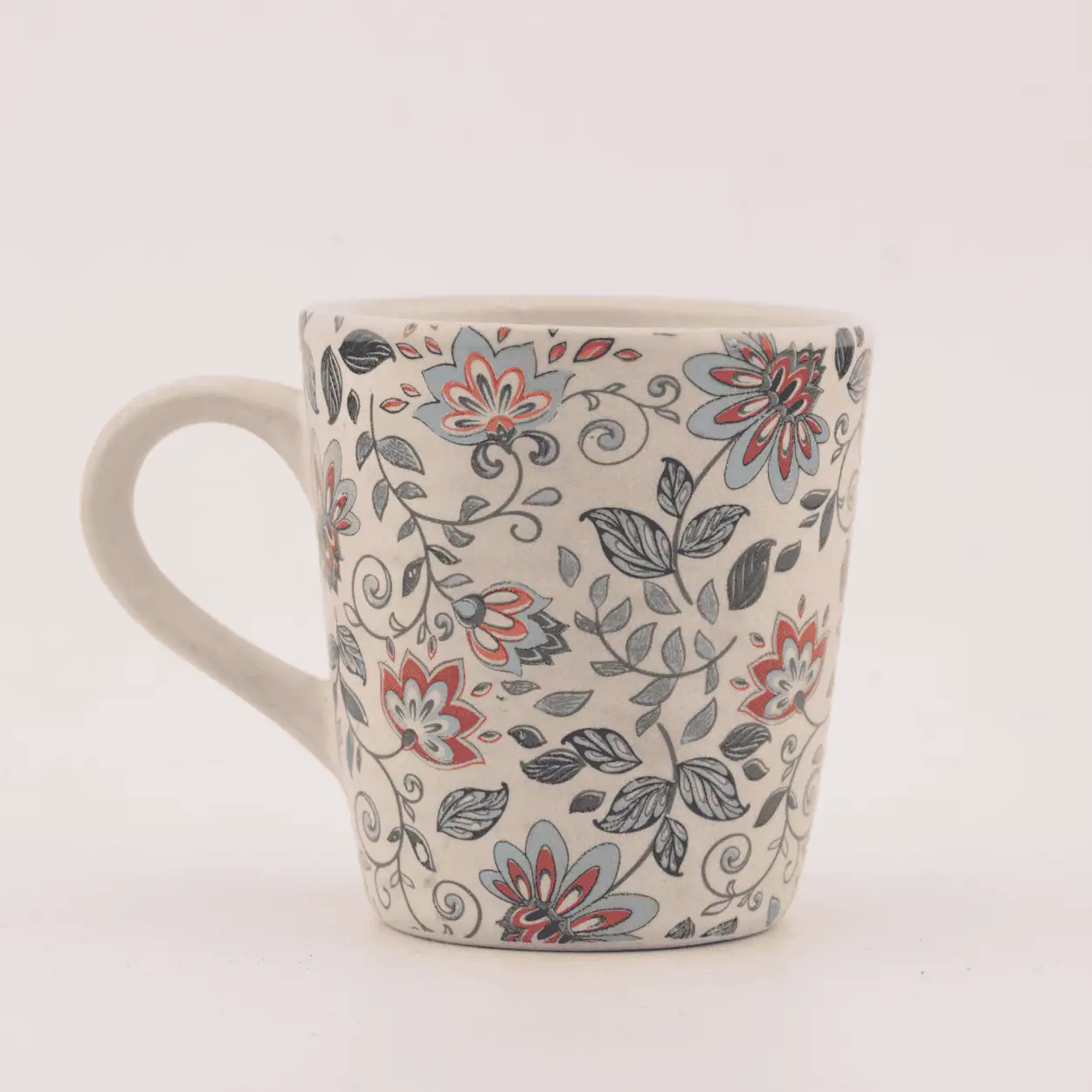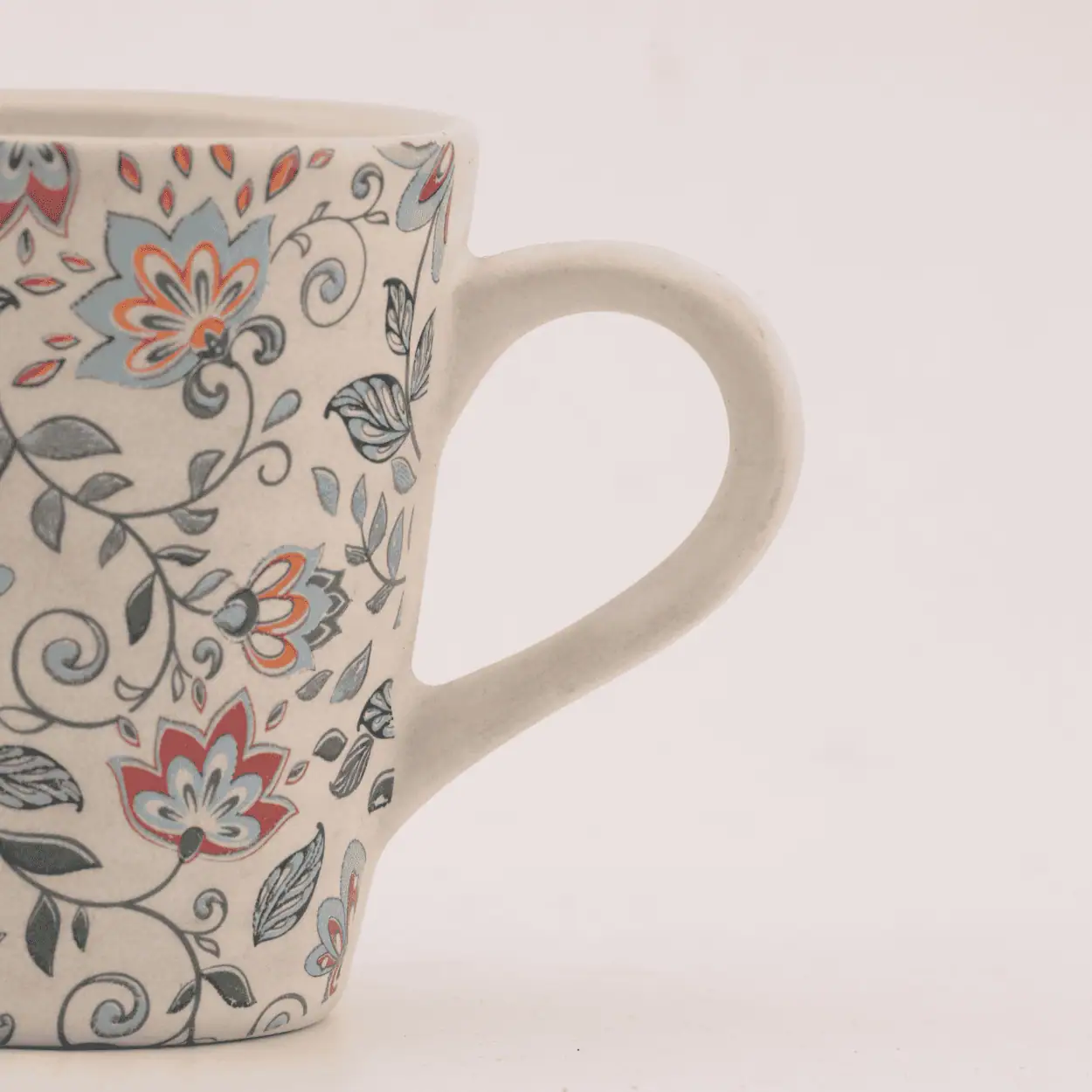 • Handcrafted stoneware mug with vibrant floral detailing