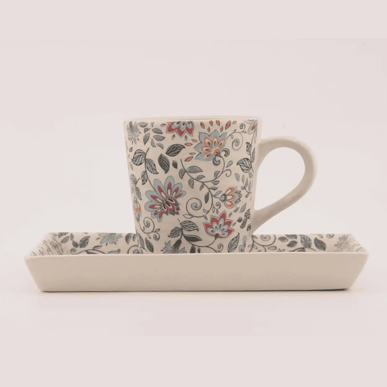 The Harmony Garden Stoneware Mug celebrates craftsmanship and color in perfect balance. Adorned with delicate, hand-painted floral motifs in hues of blue, coral, and green, each mug tells a story of artistry inspired by blooming gardens and timeless Indian design heritage.