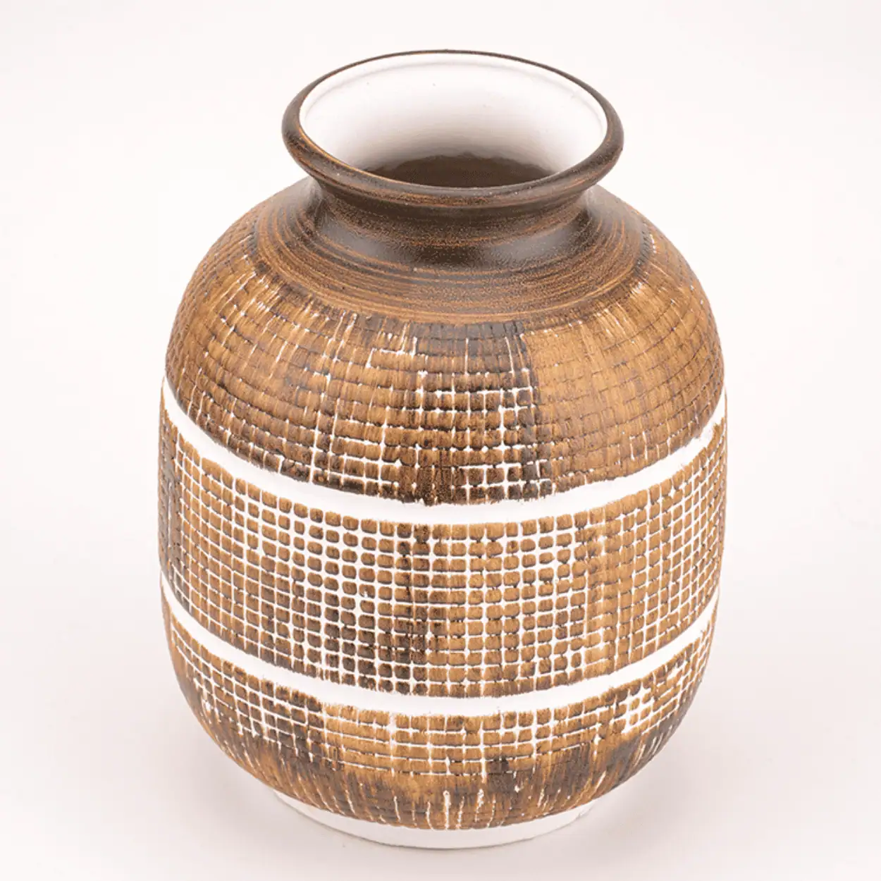The Rustic Grid Ceramic Vase celebrates the beauty of handmade craftsmanship and natural design. Each vase is skillfully shaped and hand-textured by artisans, featuring a distinctive grid pattern that adds depth, warmth, and personality to your space.